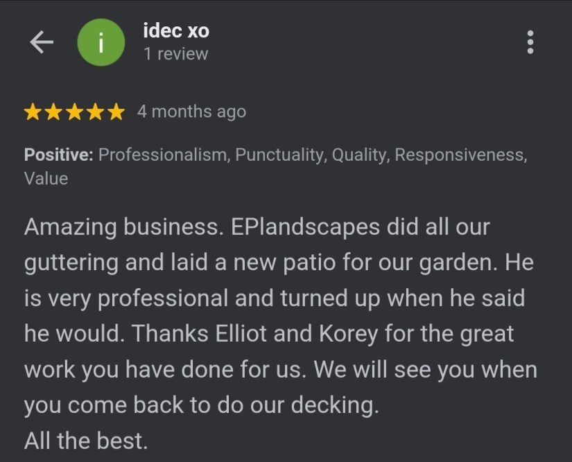 At EP Landscapes, we specialise in creating beautifully designed and expertly built outdoor spaces for both domestic and commercial clients. Our reputation is built on reliability, craftsmanship, and attention to detail, ensuring every project, large or small, is completed to the highest standard.